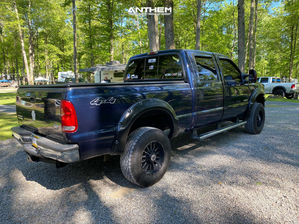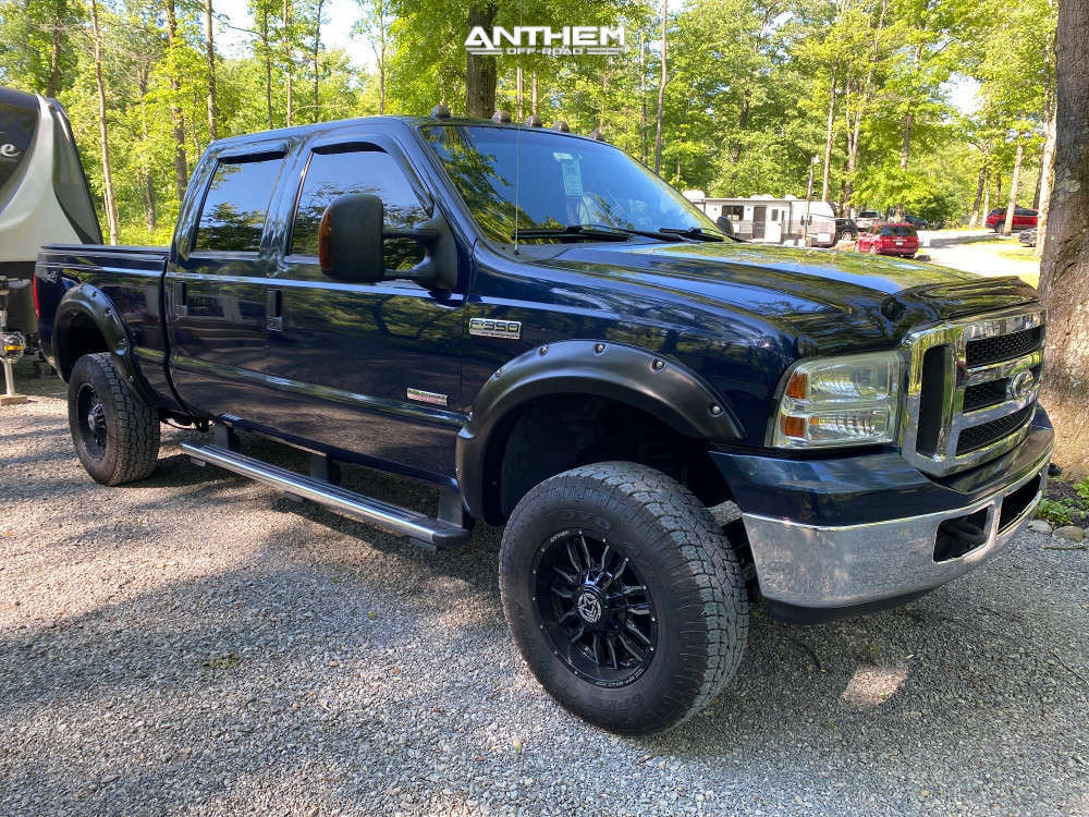 Yes they do! This 2005 Ford F-350 Super Duty 4WD is running Anthem Off-Road Equalizer 18x9 wheels, Toyo Tires Open Country A/T III 265/65 tires with Rough Country Leveling Kit suspension, and needs No trimming and has No rubbing or scrubbing. As you can see from the pics this wheel and tire combo can be done!** With this 2005 Ford F-350 Super Duty, the stance is Slightly Aggressive. Also remember spacers impact fitment, this ride is running None in front and None in rear.
