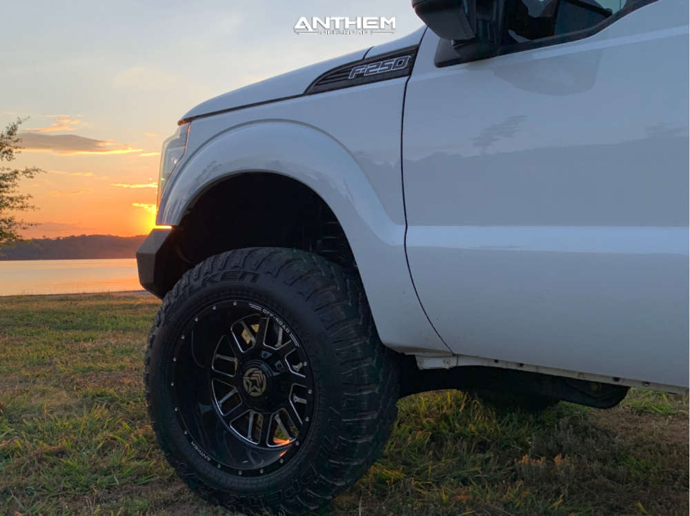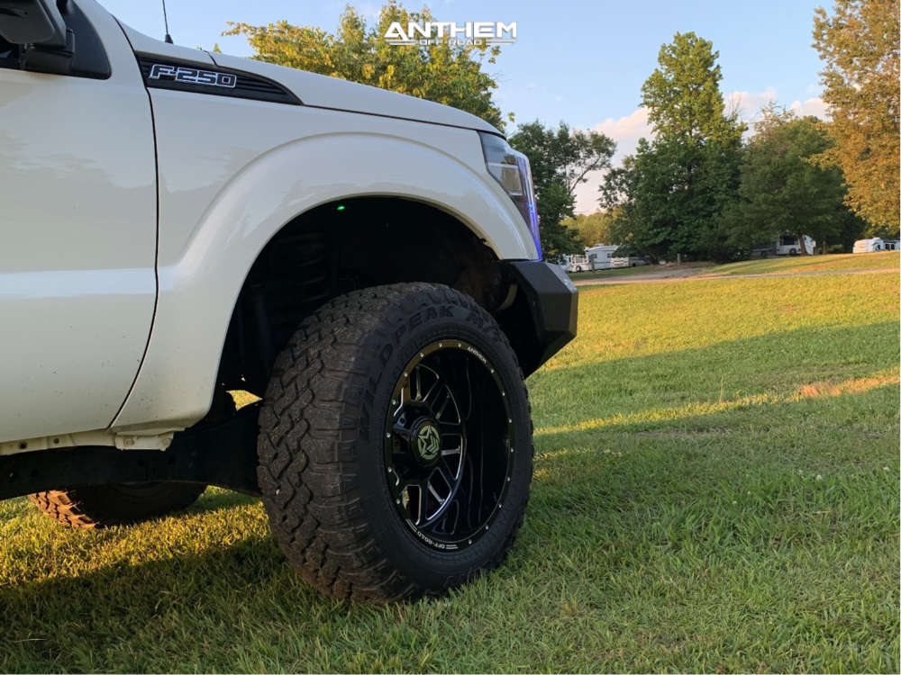 Yes they do! This 2015 Ford F-250 Super Duty 4WD is running Anthem Off-Road Gunner 20x12 wheels, Falken Wildpeak MT 35"x12.5" tires with Rough Country Leveling Kit suspension, and needs No trimming and has Slight rub at full turn. As you can see from the pics this wheel and tire combo can be done!** With this 2015 Ford F-250 Super Duty, the stance is Aggressive > 1" outside fender. Also remember spacers impact fitment, this ride is running None in front and None in rear.
