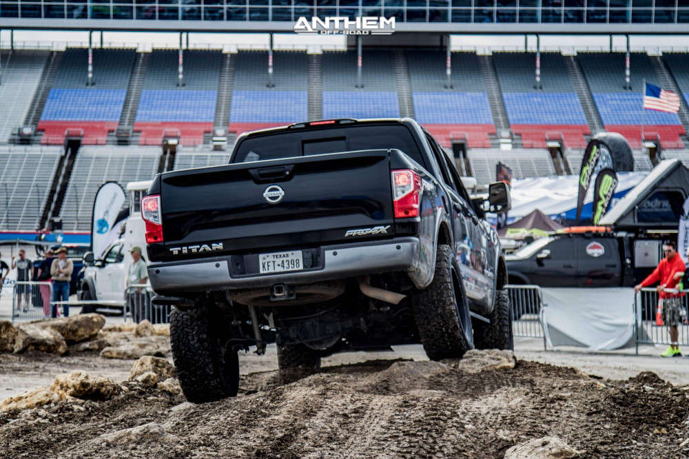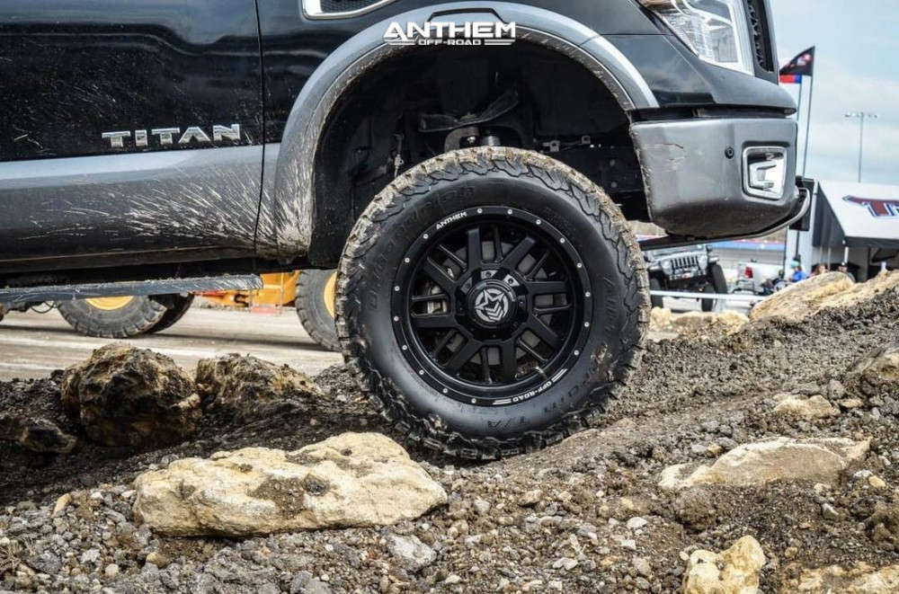 Yes they do! This 2017 Nissan Titan 4WD is running Anthem Off-Road Gunner 20x10 wheels, BFGoodrich All Terrain TA KO2 35"x12.5" tires with Rough Country Suspension Lift 6" suspension, and needs Minor metal trimming and has Slight rub at full turn. As you can see from the pics this wheel and tire combo can be done!** With this 2017 Nissan Titan, the stance is Aggressive > 1" outside fender. Also remember spacers impact fitment, this ride is running None in front and None in rear.