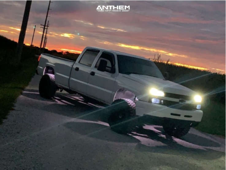 Yes they do! This 2005 Chevrolet Silverado 2500 HD 4WD is running Anthem Off-Road Equalizer 20x12 wheels, Fury Offroad Country Hunter MTII 33"x12.5" tires with 2 inch level Air Suspension suspension, and needs Minor Plastic Trimming and has Slight rub at full turn. As you can see from the pics this wheel and tire combo can be done!** With this 2005 Chevrolet Silverado 2500 HD, the stance is Aggressive > 1" outside fender. Also remember spacers impact fitment, this ride is running None in front and None in rear.