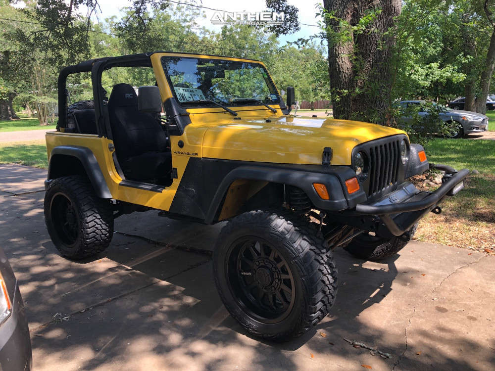 Yes they do! This 2000 Jeep TJ 4WD is running Anthem Off-Road Intimidator 20x10 wheels, Kanati Mud Hog 33"x12.5" tires with Rubicon Express Suspension Lift 4.5" suspension, and needs No trimming and has No rubbing or scrubbing. As you can see from the pics this wheel and tire combo can be done!** With this 2000 Jeep TJ, the stance is Aggressive > 1" outside fender. Also remember spacers impact fitment, this ride is running None in front and None in rear.
