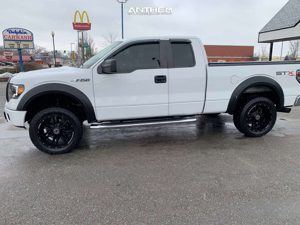 Yes they do! This 2013 Ford F-150 4WD is running Anthem Off-Road Equalizer 20x10 wheels, Gladiator Xcomp Mt 33"x12.5" tires with Rough Country Leveling Kit suspension, and needs Minor metal trimming and has No rubbing or scrubbing. As you can see from the pics this wheel and tire combo can be done!** With this 2013 Ford F-150, the stance is Super Aggressive 3"-5". Also remember spacers impact fitment, this ride is running 5mm in front and 5mm in rear.