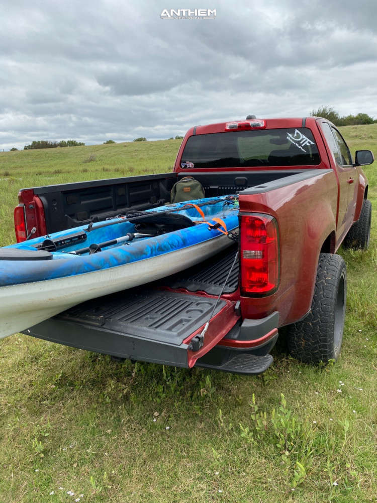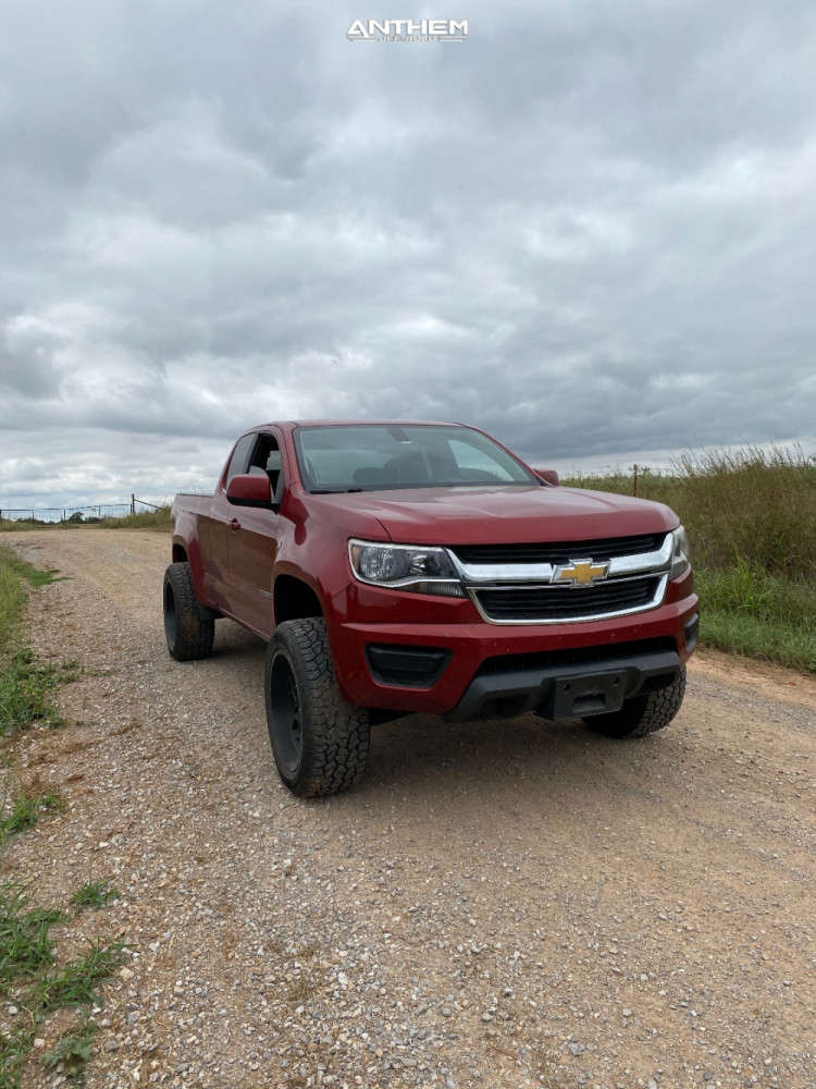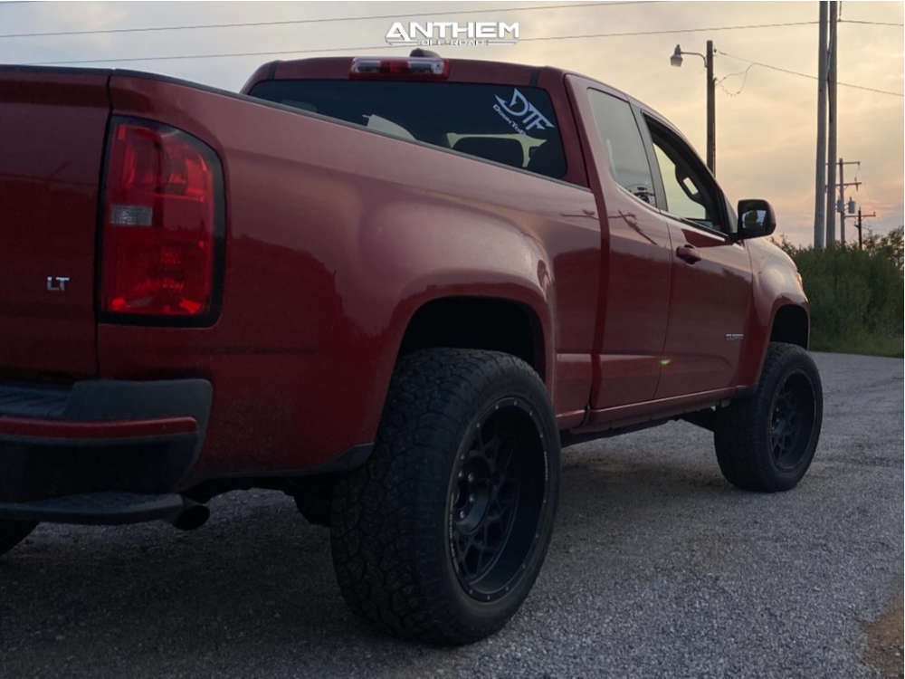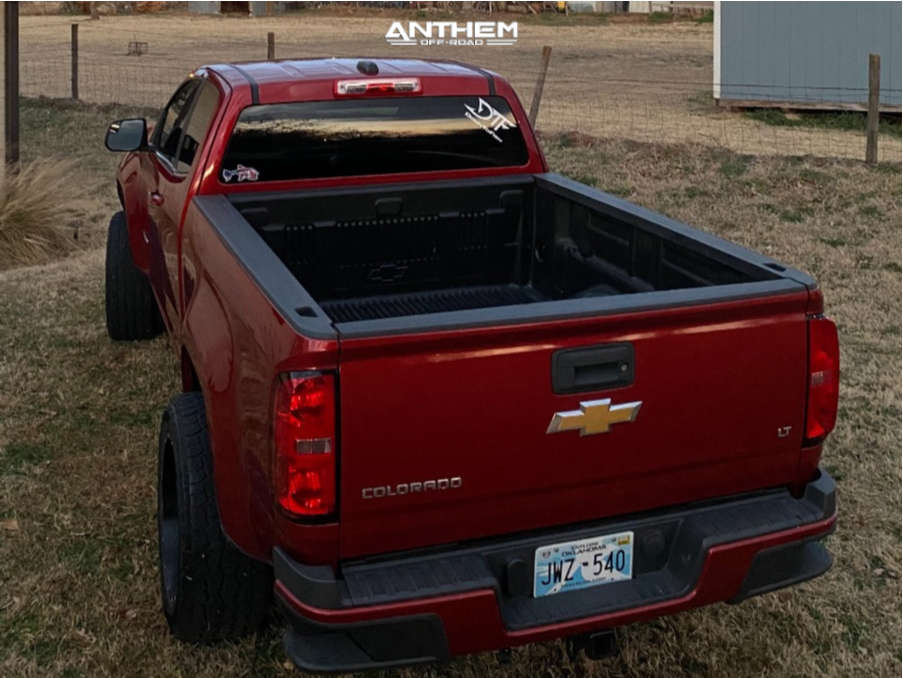 Yes they do! This 2015 Chevrolet Colorado RWD is running Anthem Off-Road Avenger 20x10 wheels, Pathfinder All Terrain 275/55 tires with Eibach Suspension Lift 2.5" suspension, and needs Minor Plastic Trimming and has Rubs. As you can see from the pics this wheel and tire combo can be done!** With this 2015 Chevrolet Colorado, the stance is Super Aggressive 3"-5". Also remember spacers impact fitment, this ride is running 1.5" in front and 1.5" in rear.