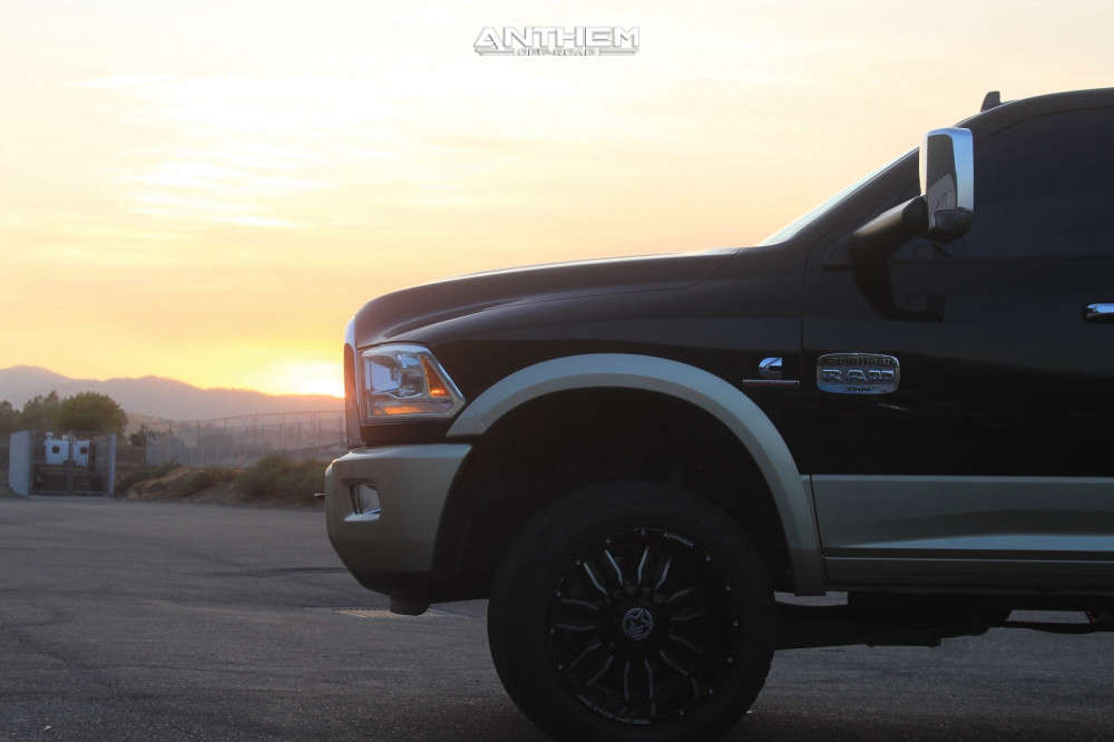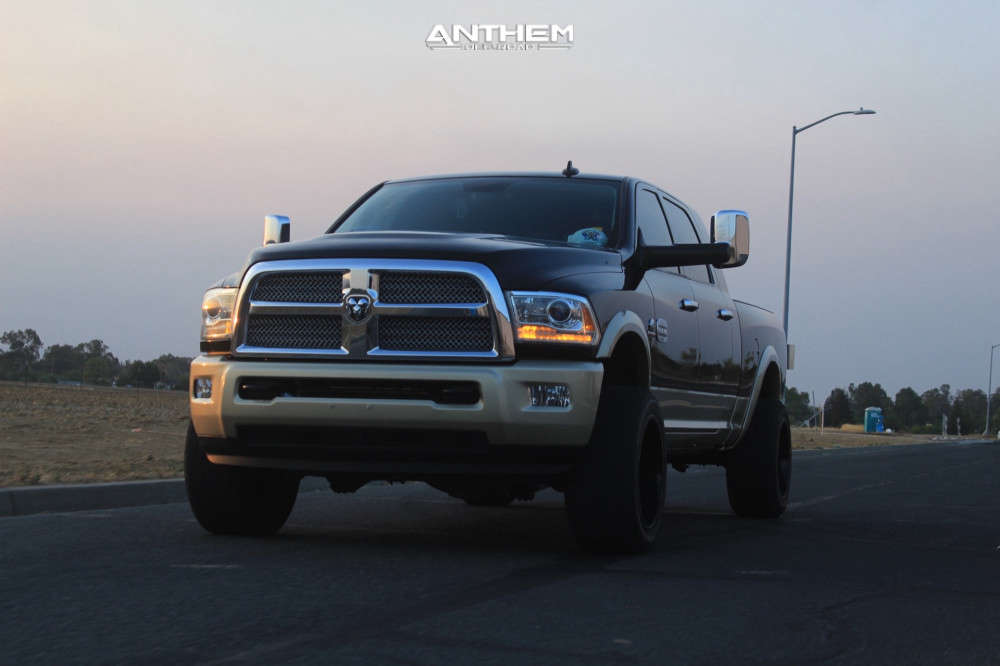 Yes they do! This 2014 Ram 3500 4WD is running Anthem Off-Road Equalizer 20x12 wheels, Toyo Tires Open Country M/T 33"x12.5" tires with Bilstein Suspension Lift 2.5" suspension, and needs Minor Plastic Trimming and has No rubbing or scrubbing. As you can see from the pics this wheel and tire combo can be done!** With this 2014 Ram 3500, the stance is Aggressive > 1" outside fender. Also remember spacers impact fitment, this ride is running None in front and None in rear.