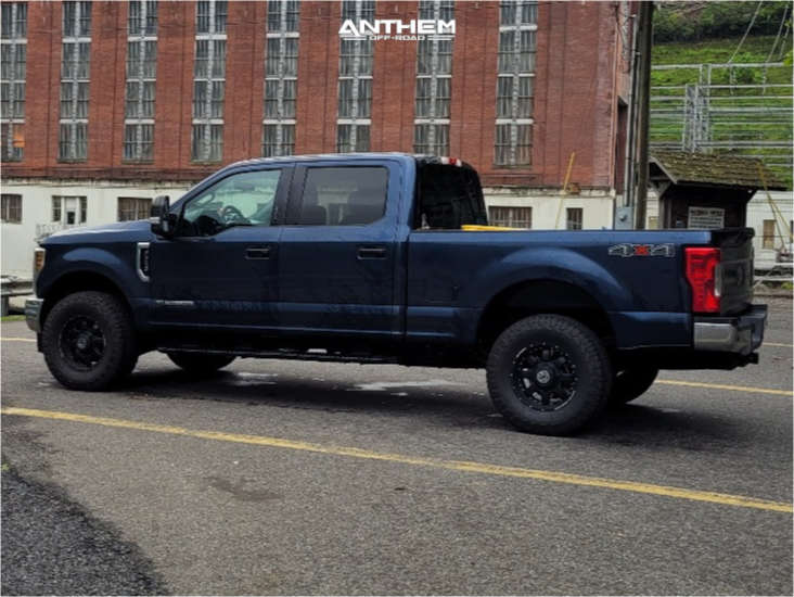 Yes they do! This 2019 Ford F-250 Super Duty 4WD is running Anthem Off-Road Commander 18x9 wheels, Cooper Discoverer At3 Lt 35"x12.5" tires with OEM Stock suspension, and needs No trimming and has No rubbing or scrubbing. As you can see from the pics this wheel and tire combo can be done!** With this 2019 Ford F-250 Super Duty, the stance is Aggressive > 1" outside fender. Also remember spacers impact fitment, this ride is running None in front and None in rear.