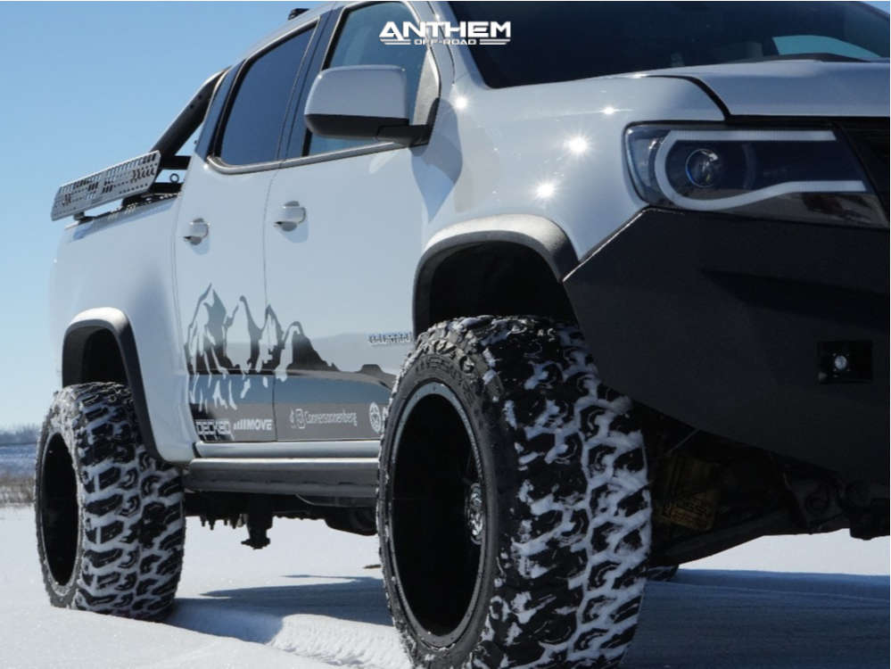 Yes they do! This 2019 Chevrolet Colorado 4WD is running Anthem Off-Road Equalizer 20x12 wheels, Versatyre Mt 33"x12.5" tires with Stock suspension, and needs Minor Plastic Trimming and has Slight rub at full turn. As you can see from the pics this wheel and tire combo can be done!** With this 2019 Chevrolet Colorado, the stance is Hella Stance >5". Also remember spacers impact fitment, this ride is running 0.25" in front and 0.25" in rear.