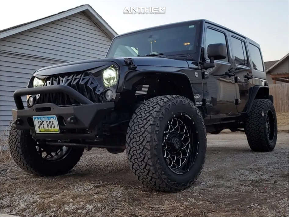 Yes they do! This 2014 Jeep Wrangler 4WD is running Anthem Off-Road Avenger 20x10 wheels, Venom Power Terra Hunter X/T 35"x12.5" tires with BDS Suspension Suspension Lift 2.5" suspension, and needs No trimming and has No rubbing or scrubbing. As you can see from the pics this wheel and tire combo can be done!** With this 2014 Jeep Wrangler, the stance is Aggressive > 1" outside fender. Also remember spacers impact fitment, this ride is running None in front and None in rear.