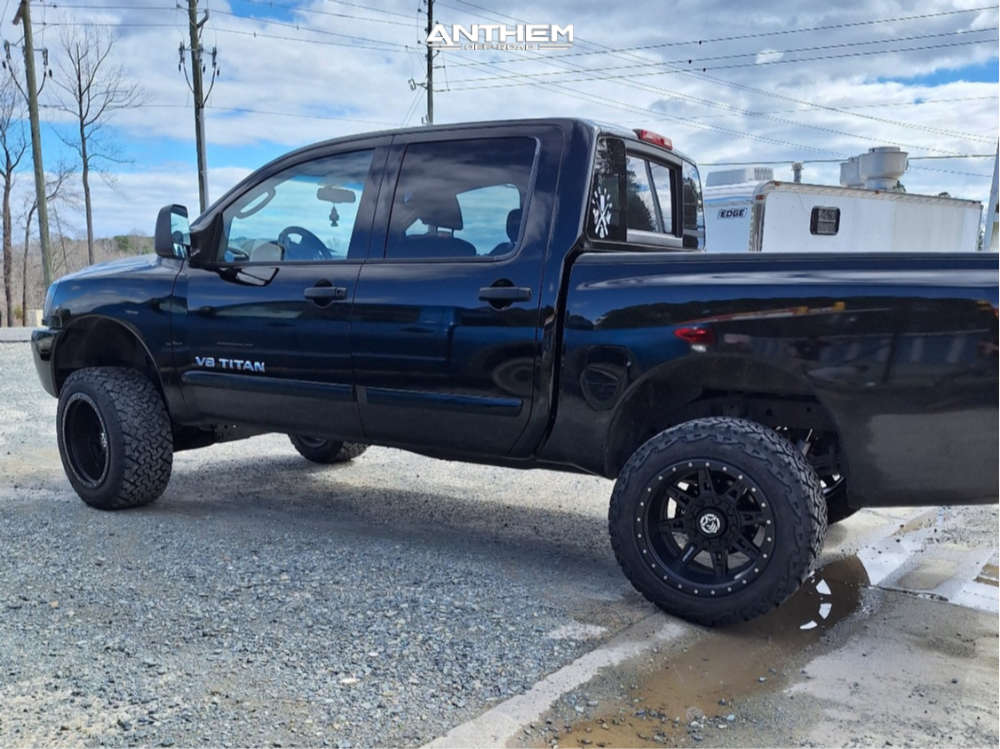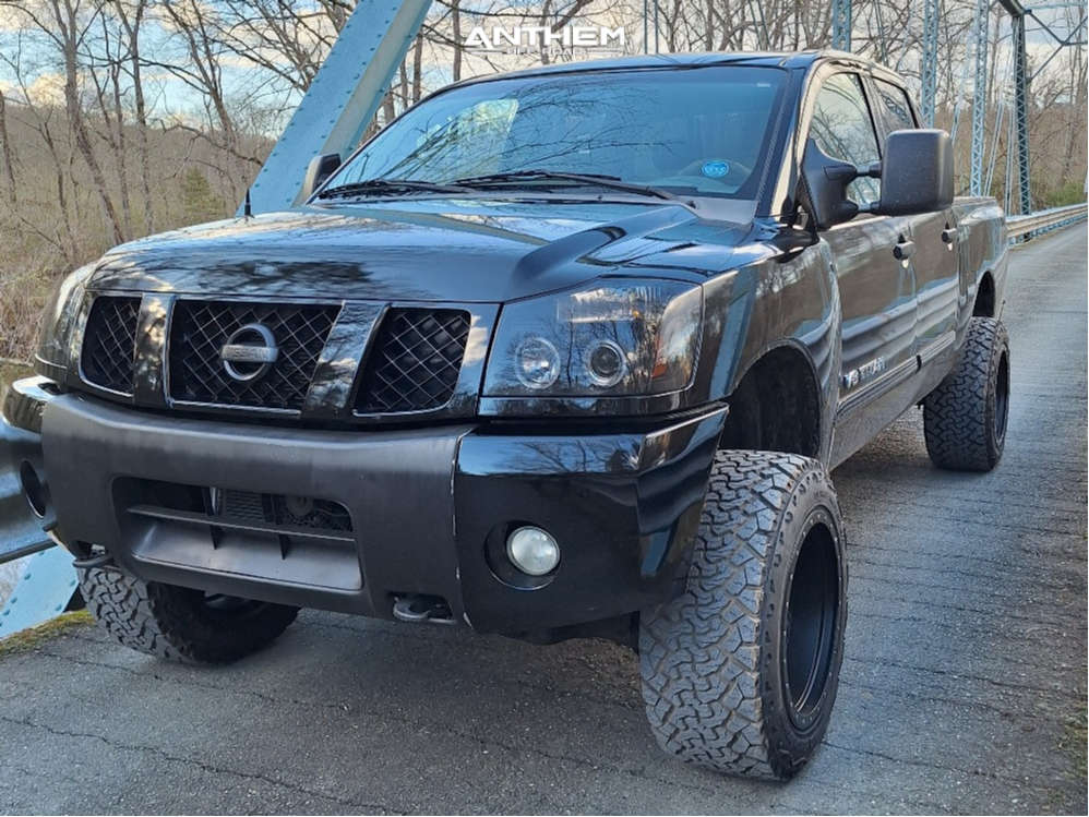 Yes they do! This 2006 Nissan TITAN 4WD is running Anthem Off-Road Rogue 20x12 wheels, Venom Power Terra Hunter X/T 33"x12.5" tires with Rough Country Suspension Lift 4" suspension, and needs Major Plastic Trimming and has Slight rub at full turn. As you can see from the pics this wheel and tire combo can be done!** With this 2006 Nissan TITAN, the stance is Super Aggressive 3"-5". Also remember spacers impact fitment, this ride is running None in front and None in rear.