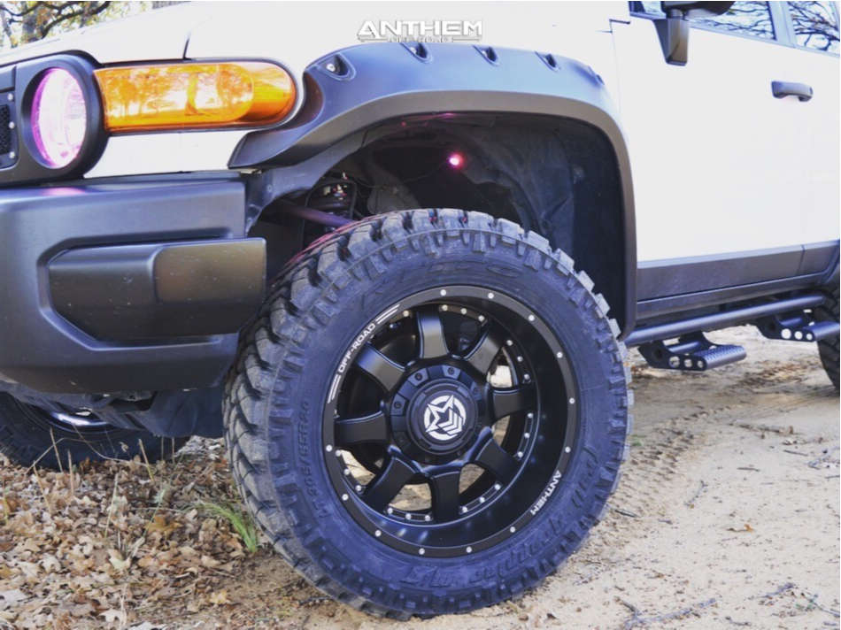 Yes they do! This 2014 Toyota FJ Cruiser 4WD is running Anthem Off-Road Commander 20x10 wheels, Nitto Trail Grappler 305/55 tires with ReadyLIFT Suspension Lift 3" suspension, and needs Major metal trimming and has No rubbing or scrubbing. As you can see from the pics this wheel and tire combo can be done!** With this 2014 Toyota FJ Cruiser, the stance is Slightly Aggressive. Also remember spacers impact fitment, this ride is running None in front and None in rear.