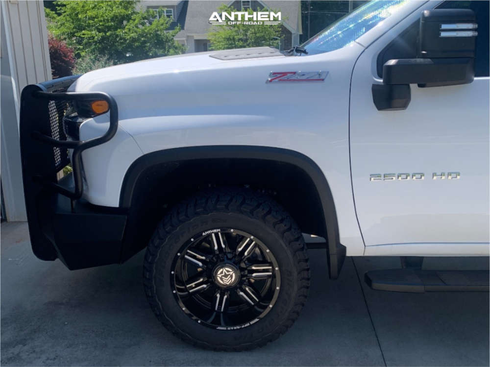 Yes they do! This 2023 Chevrolet Silverado 2500 HD 4WD is running Anthem Off-Road Equalizer 20x12 wheels, BFGoodrich All Terrain T/a Ko3 33"x12.5" tires with Stock Suspension suspension, and needs No trimming and has No rubbing or scrubbing. As you can see from the pics this wheel and tire combo can be done!** With this 2023 Chevrolet Silverado 2500 HD, the stance is Aggressive > 1" outside fender. Also remember spacers impact fitment, this ride is running None in front and None in rear.