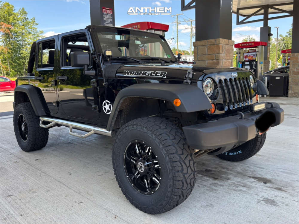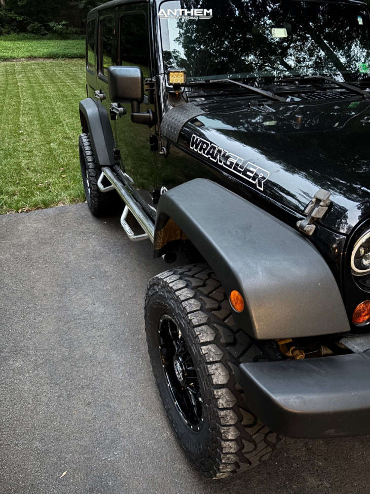 Yes they do! This 2012 Jeep Wrangler 4WD is running Anthem Off-Road Equalizer 18x9 wheels, Gladiator X Comp Xt 35"x12.5" tires with Unknown Suspension Lift 3.5" suspension, and needs No trimming and has No rubbing or scrubbing. As you can see from the pics this wheel and tire combo can be done!** With this 2012 Jeep Wrangler, the stance is Aggressive > 1" outside fender. Also remember spacers impact fitment, this ride is running None in front and None in rear.