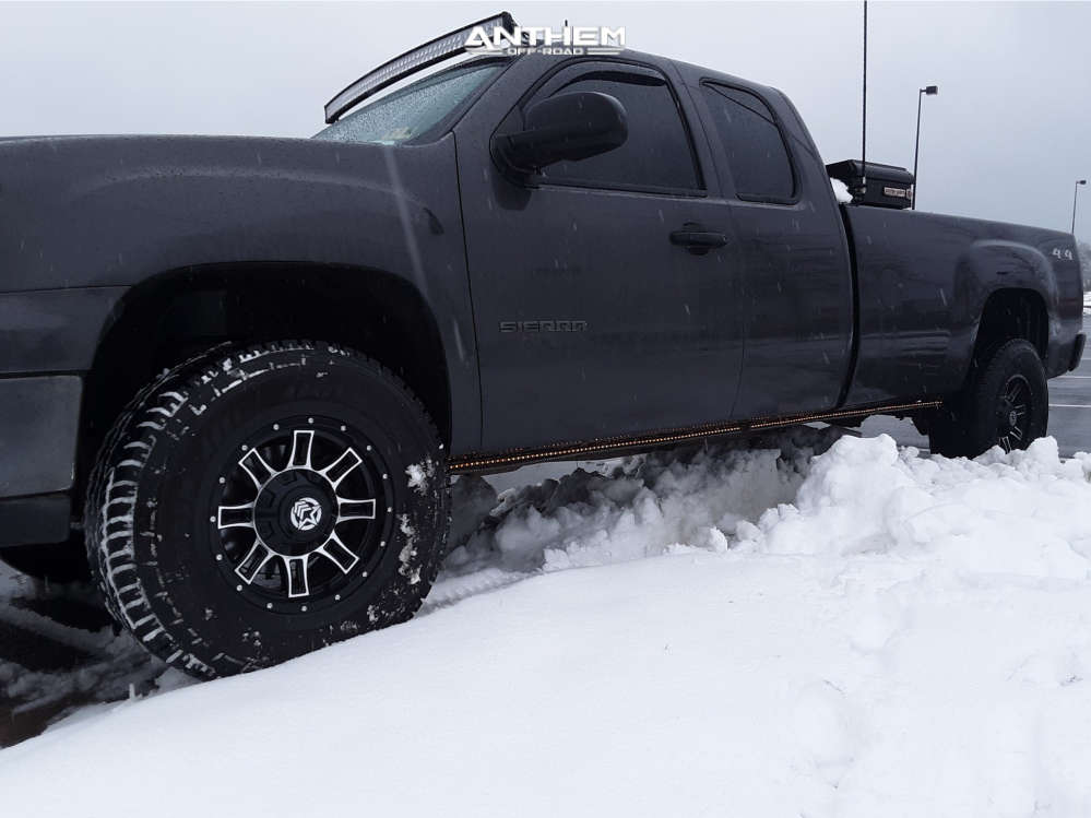Yes they do! This 2011 GMC Sierra 1500 4WD is running Anthem Off-Road Instigator 17x9 wheels, Americus All Terrian 35"x12.5" tires with Custom Suspension Lift 3" suspension, and needs Minor Plastic Trimming and has Rubs. As you can see from the pics this wheel and tire combo can be done!** With this 2011 GMC Sierra 1500, the stance is Slightly Aggressive. Also remember spacers impact fitment, this ride is running None in front and None in rear.