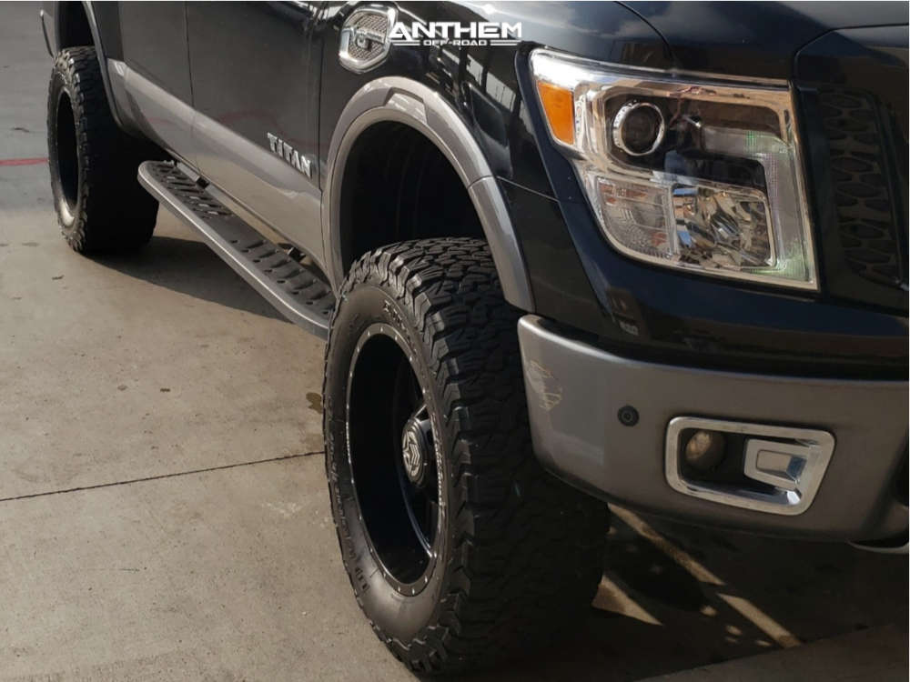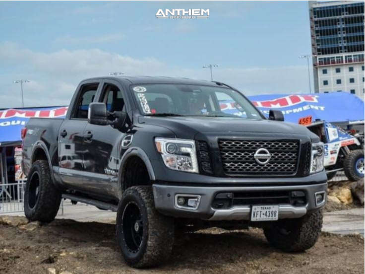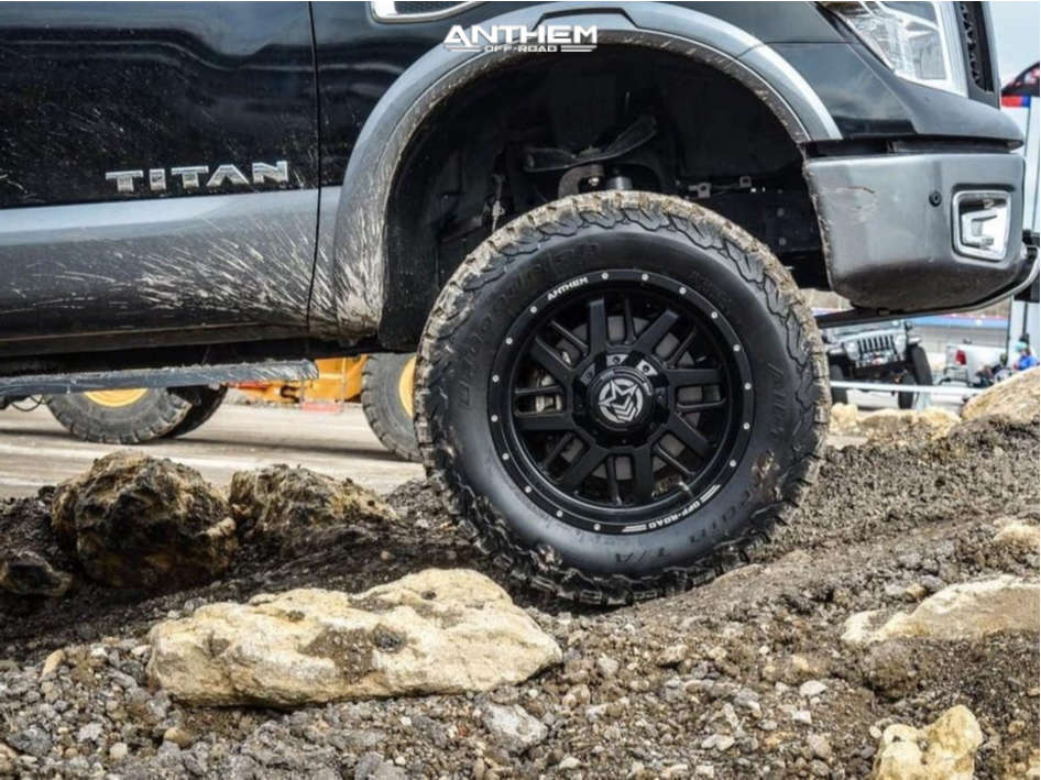 Yes they do! This 2017 Nissan Titan 4WD is running Anthem Off-Road Gunner 20x10 wheels, BFGoodrich All Terrain TA KO2 35"x12.5" tires with Rough Country Suspension Lift 6" suspension, and needs Minor Plastic Trimming and has Slight rub at full turn. As you can see from the pics this wheel and tire combo can be done!** With this 2017 Nissan Titan, the stance is Aggressive > 1" outside fender. Also remember spacers impact fitment, this ride is running None in front and None in rear.