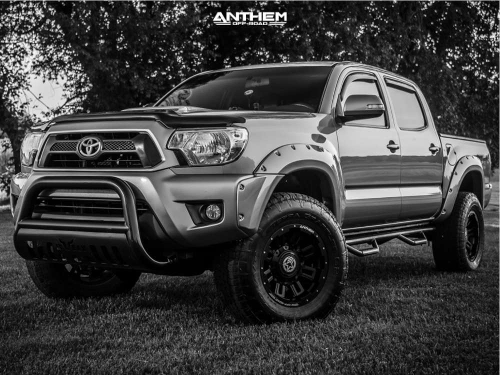 Yes they do! This 2015 Toyota Tacoma 4WD is running Anthem Off-Road Defender 17x9 wheels, Nitto Terra Grappler G2 285/75 tires with Skyjacker Suspension Lift 2.5" suspension, and needs Minor Plastic Trimming and has Slight rub at full turn. As you can see from the pics this wheel and tire combo can be done!** With this 2015 Toyota Tacoma, the stance is Aggressive > 1" outside fender. Also remember spacers impact fitment, this ride is running 0.25" in front and None in rear.