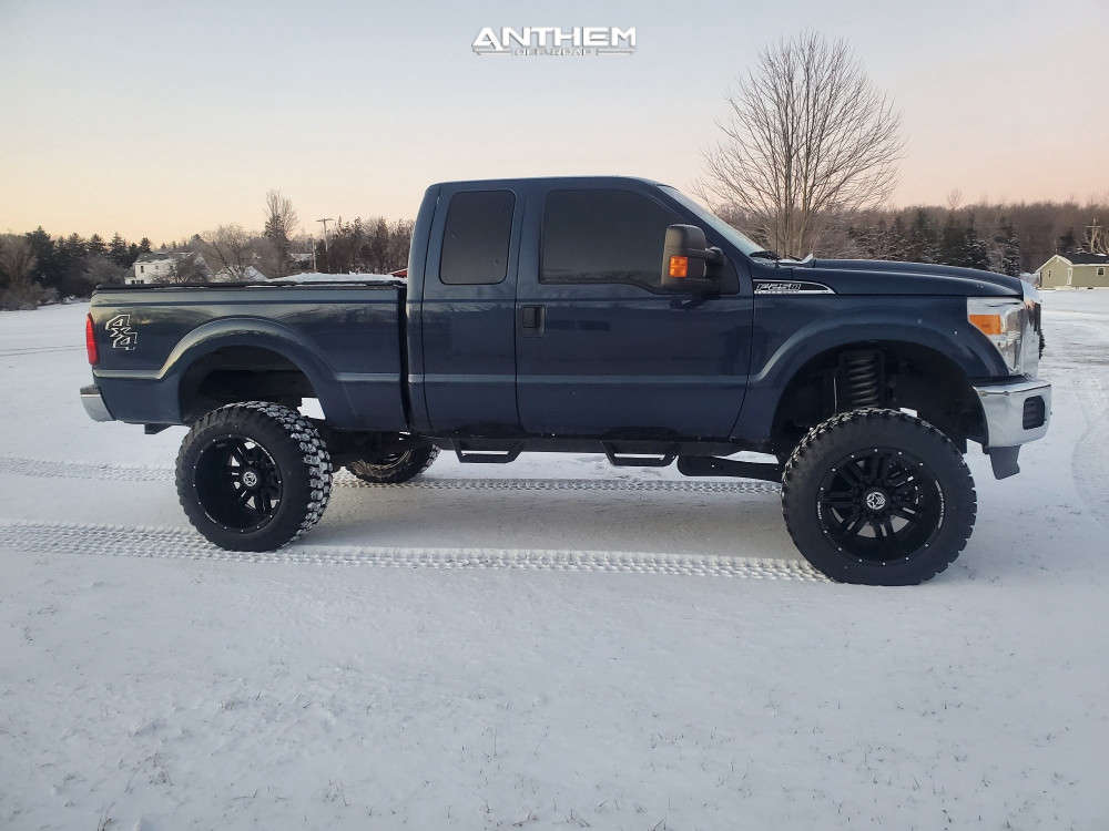 Yes they do! This 2013 Ford F-250 Super Duty 4WD is running Anthem Off-Road Equalizer 22x14 wheels, Ironman All Country MT 37"x13.5" tires with Rough Country Suspension Lift 8" suspension, and needs No trimming and has Slight rub at full turn. As you can see from the pics this wheel and tire combo can be done!** With this 2013 Ford F-250 Super Duty, the stance is Super Aggressive 3"-5". Also remember spacers impact fitment, this ride is running None in front and None in rear.