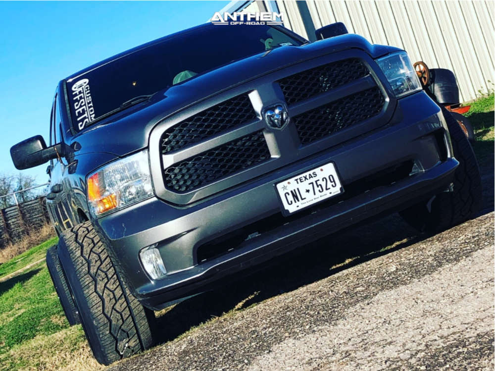 Yes they do! This 2013 Ram 1500 RWD is running Anthem Off-Road Equalizer 22x14 wheels, Nitto NT420V 305/45 tires with OEM Stock suspension, and needs Minor Plastic Trimming and has Rubs like crazy but who cares. As you can see from the pics this wheel and tire combo can be done!** With this 2013 Ram 1500, the stance is Hella Stance >5". Also remember spacers impact fitment, this ride is running 2" in front and 2" in rear.