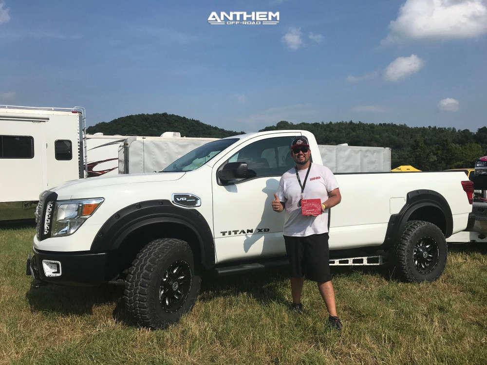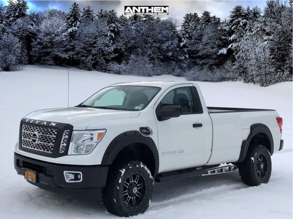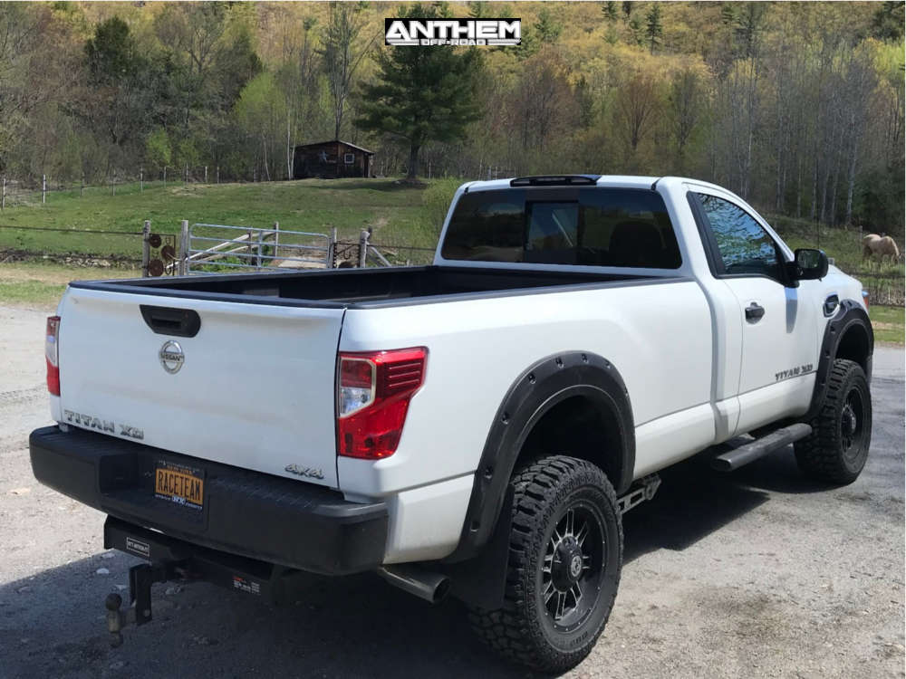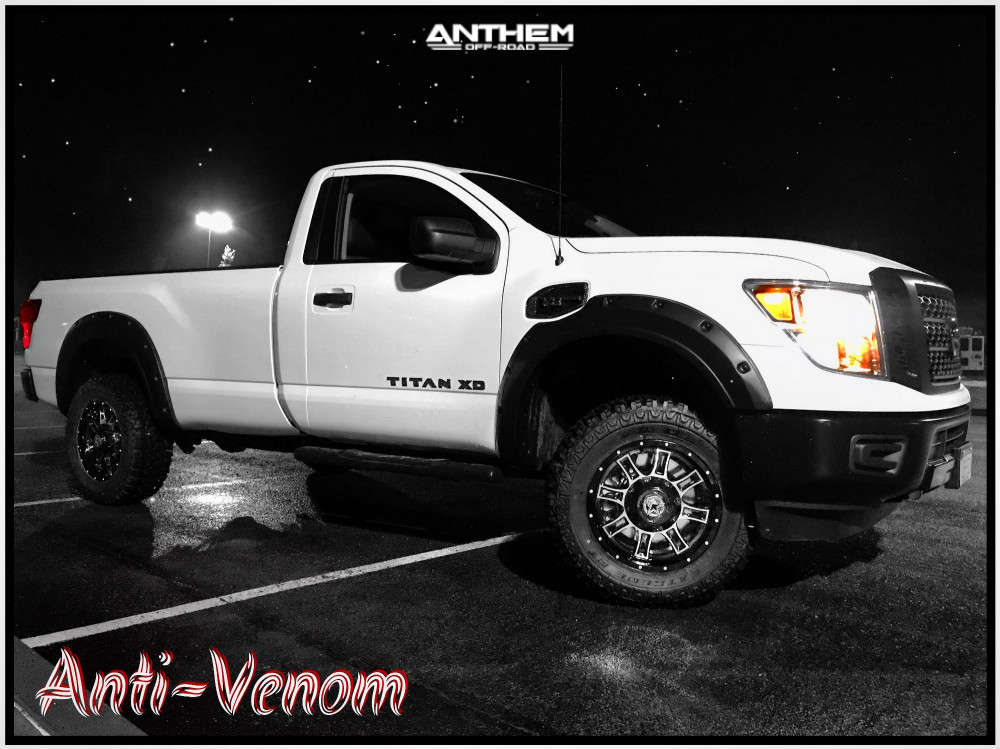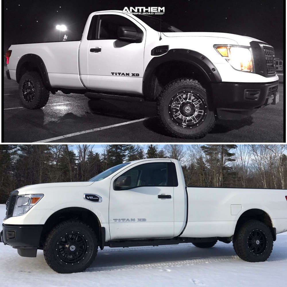 Yes they do! This 2017 Nissan Titan XD RWD is running Anthem Off-Road Instigator 18x9 wheels, Mud Claw Extreme M/t 35"x12.5" tires with PRG Products Suspension Lift 2.5" suspension, and needs Major metal trimming and has Slight rub at full turn. As you can see from the pics this wheel and tire combo can be done!** With this 2017 Nissan Titan XD, the stance is Super Aggressive 3"-5". Also remember spacers impact fitment, this ride is running None in front and None in rear.