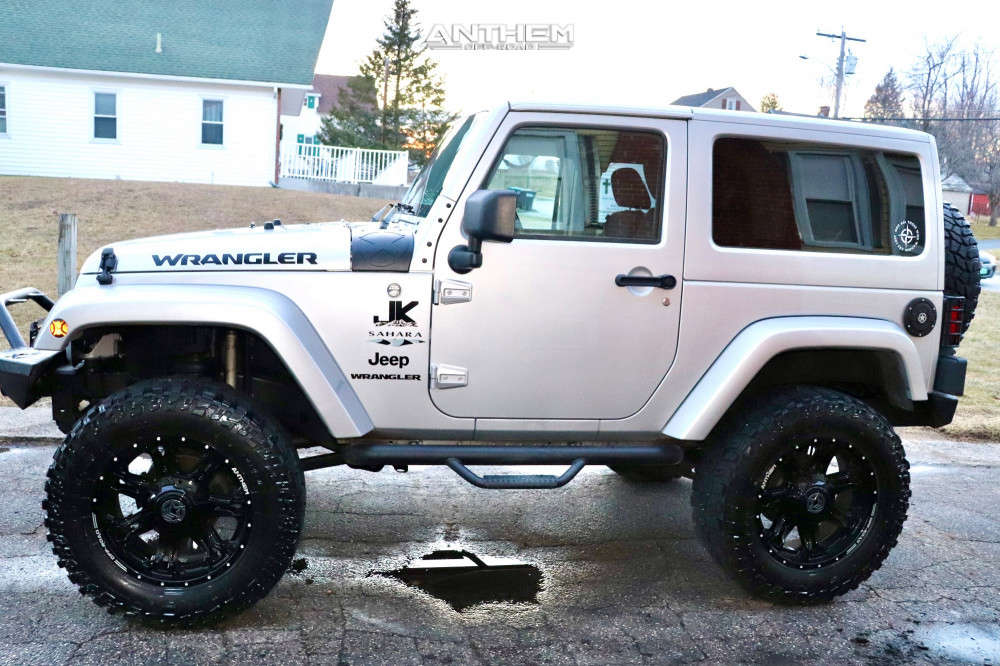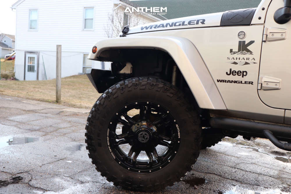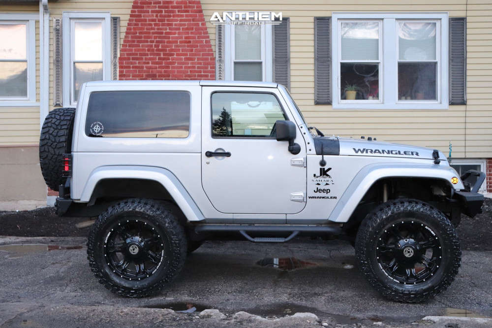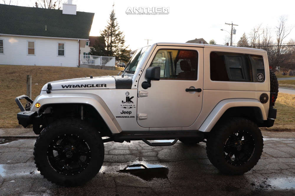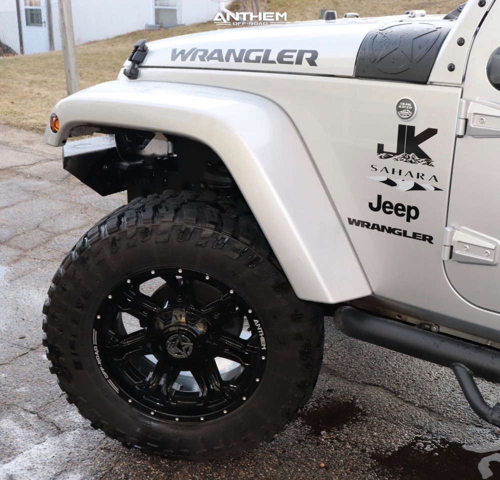 Yes they do! This 2012 Jeep Wrangler 4WD is running Anthem Off-Road Aviator 20x9 wheels, Cooper Discoverer STT Pro 35"x12.5" tires with Skyjacker Suspension Lift 4" suspension, and needs No trimming and has No rubbing or scrubbing. As you can see from the pics this wheel and tire combo can be done!** With this 2012 Jeep Wrangler, the stance is Aggressive > 1" outside fender. Also remember spacers impact fitment, this ride is running None in front and None in rear.